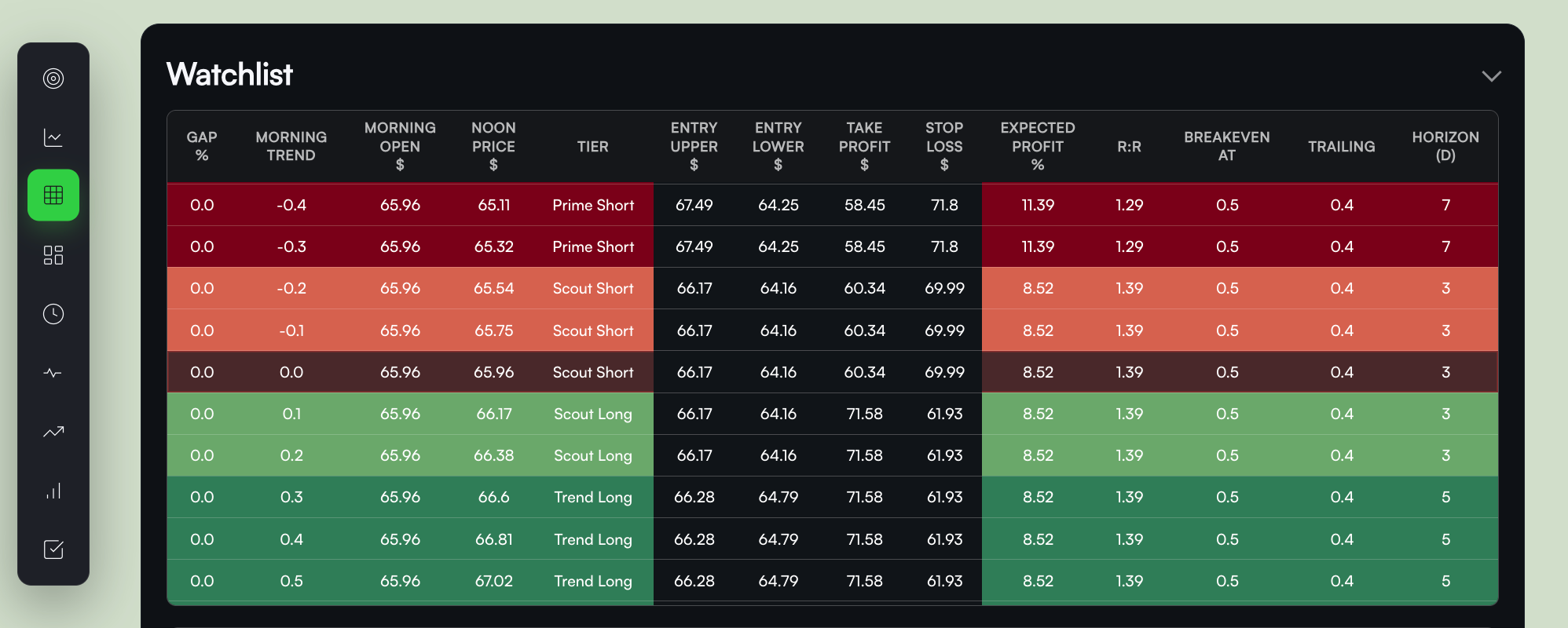Prime is “highest quality conditions.” Trend/Scout happen more often; the model still provides a plan, but your execution discipline matters more.