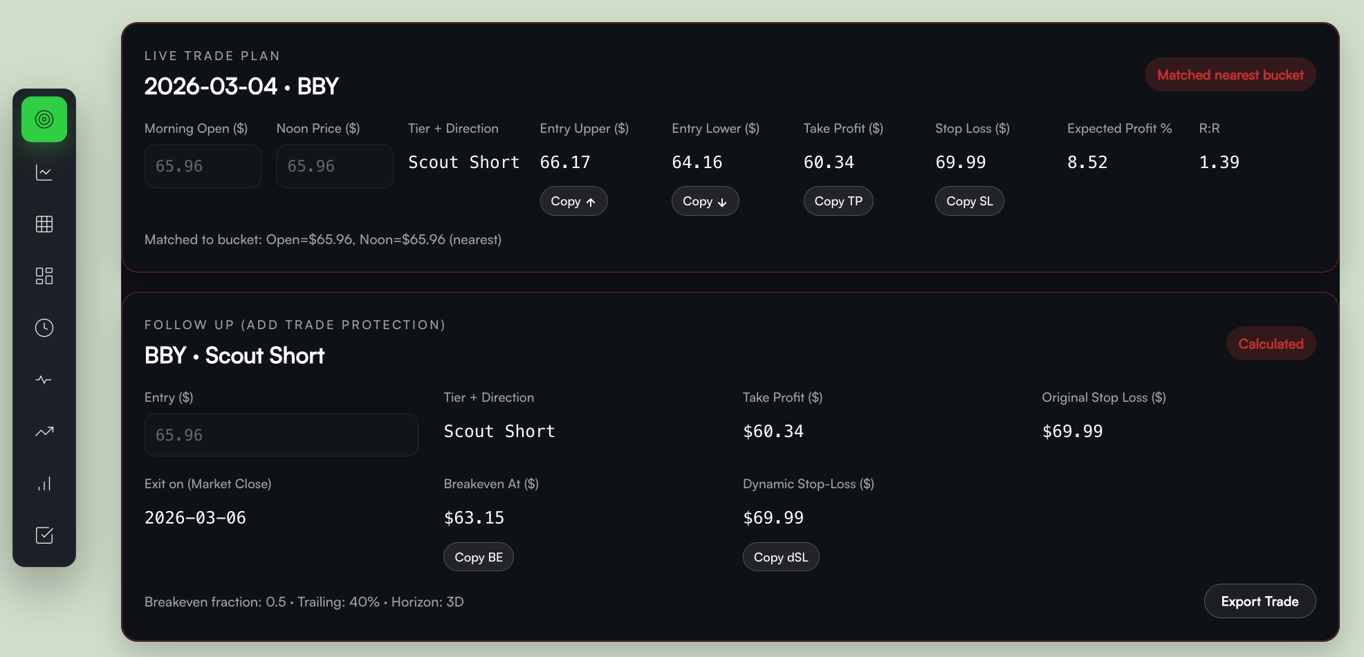 Live Trade Plan & Follow-Up widgets